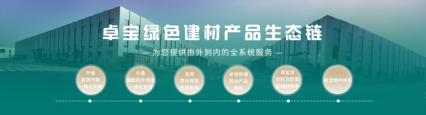 湖北卓寶建筑節能科技有限公司是卓寶集團旗下全資子公司,公司將綠色建筑理念和卓寶創新基因深度融合,打造了涵蓋外墻裝飾節能一體化、防水保溫一體化、海綿城市雨水收集排放、內外墻涂料&基輔材、防水修繕、建筑地坪“六位一體”綠色產品生態鏈,提供自屋面到地面,自外墻到內墻,及防火防腐等一系列功能型綠色建材,適用于外圍護、內裝飾的全系統服務。通過自身研發優勢,累計申請百余項國家專利,并參與多項國家標準、地方標準制定,保障了每一塊出廠產品的質量,為客戶提供質量保障。